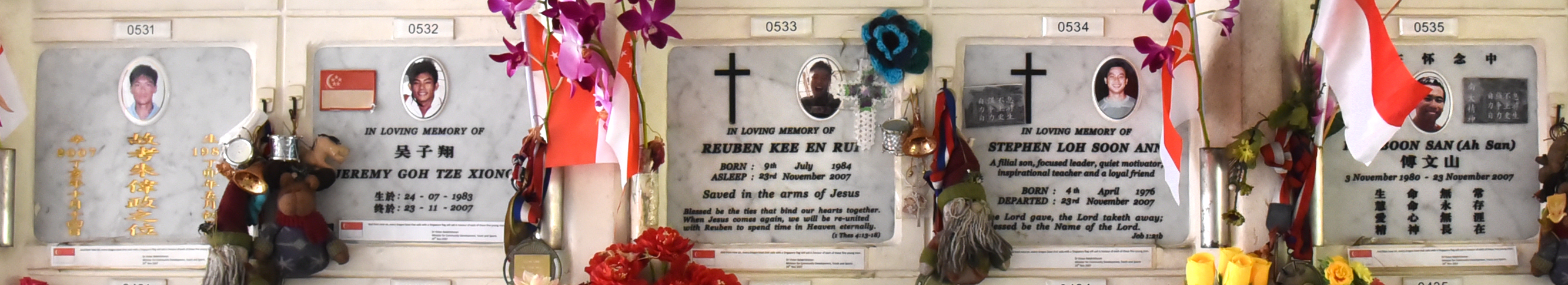 Every year, they visit his niche at Mandai Crematorium twice: On his birthday, and on the accident anniversary. The latter trip is made with the other parents, as the five urns are placed side by side, despite each individual being of differing religion. “That was a good decision,” Cathy nodded.